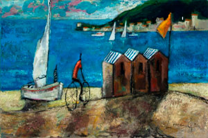 Escultura homenaje a Didier Lourenço en la rotonda de entrada al puerto de Premiá de Mar, Barcelona. Siempre con sonrisa franca y trazos cuidados. Pintura, escultura y Obra Gráfica para recordar su persona y su arte.
