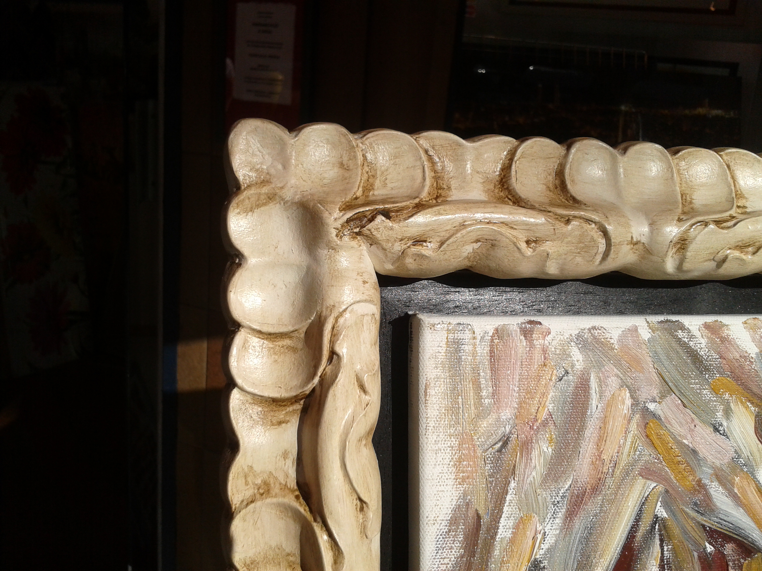 Una de las especialidades de nuestro Taller es el realizar las decoraciones de molduras a base de teñidos y otras técnicas, que dan verdadera personalidad a nuestros trabajos de enmarcación a medida. A la hora de realizarlas tenemos en cuenta varios factores. El principal e tener muy presente la obra o el objeto que vamos a enmarcar. Sin dejar de lado en ningún momento el lugar y entorno donde va a ser colocado y por supuesto los gustos en cuanto a estilo, colores y detalles preferidos de quien va a verlo en su casa todos los días.